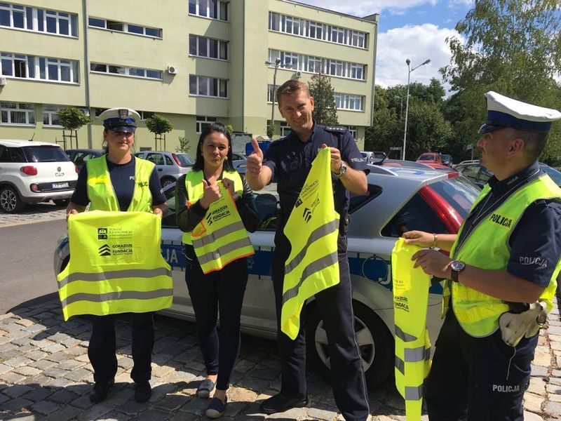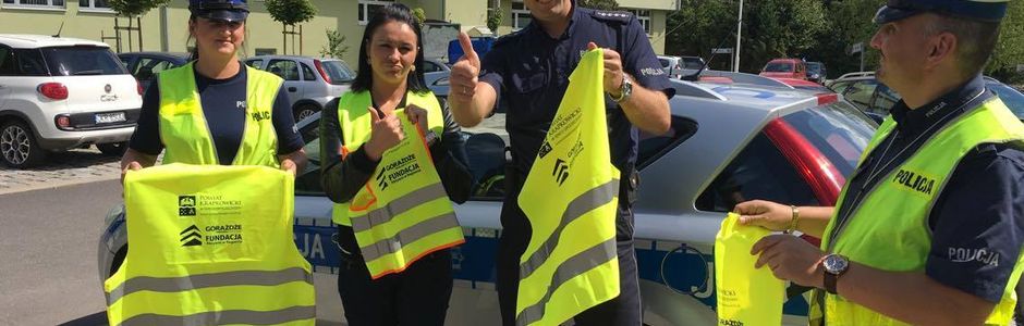 Zamiast mandatu odblaskowa kamizelka. Krapkowiccy policjanci byli w ubiegły czwartek bardzo wyrozumiali dla mieszkańców powiatu, którzy popełnili wykroczenia. Nieprawidłowe przejście przez jezdnię, czy jazda rowerem po chodniku nie kończyły się mandatem, a tylko pouczaniem. Na dodatek funkcjonariusze wraz pracownikami starostwa wręczali odblaskowe kamizelki. Wszystko w ramach akcji „Bezpieczne wakacje”, która jest realizowana wspólnie przez powiat i Fundację Górażdże Aktywni w Regionie.