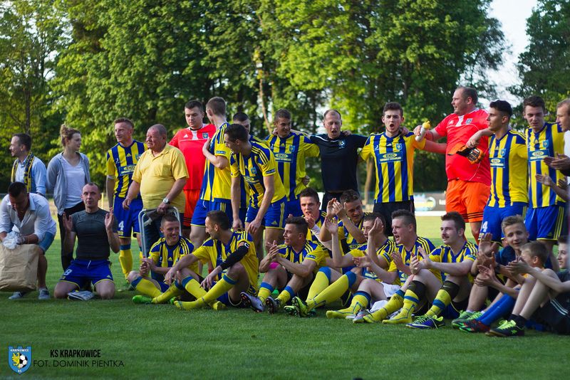 Chociaż przed meczem wydawało się, że zwycięstwo to tak naprawdę formalność, trzeba było ją przypieczętować. Ks Krapkowice podejmował na własnym boisku ostatnią w tabeli LZS Ścinawę Nyską. Mecz nie był wielkim widowiskiem, ale zwycięstwo i wielka feta po końcowym gwizdku była dla kibiców zdecydowanie ważniejsze. W przyszłym sezonie nasza drużyna zagra w IV lidze.