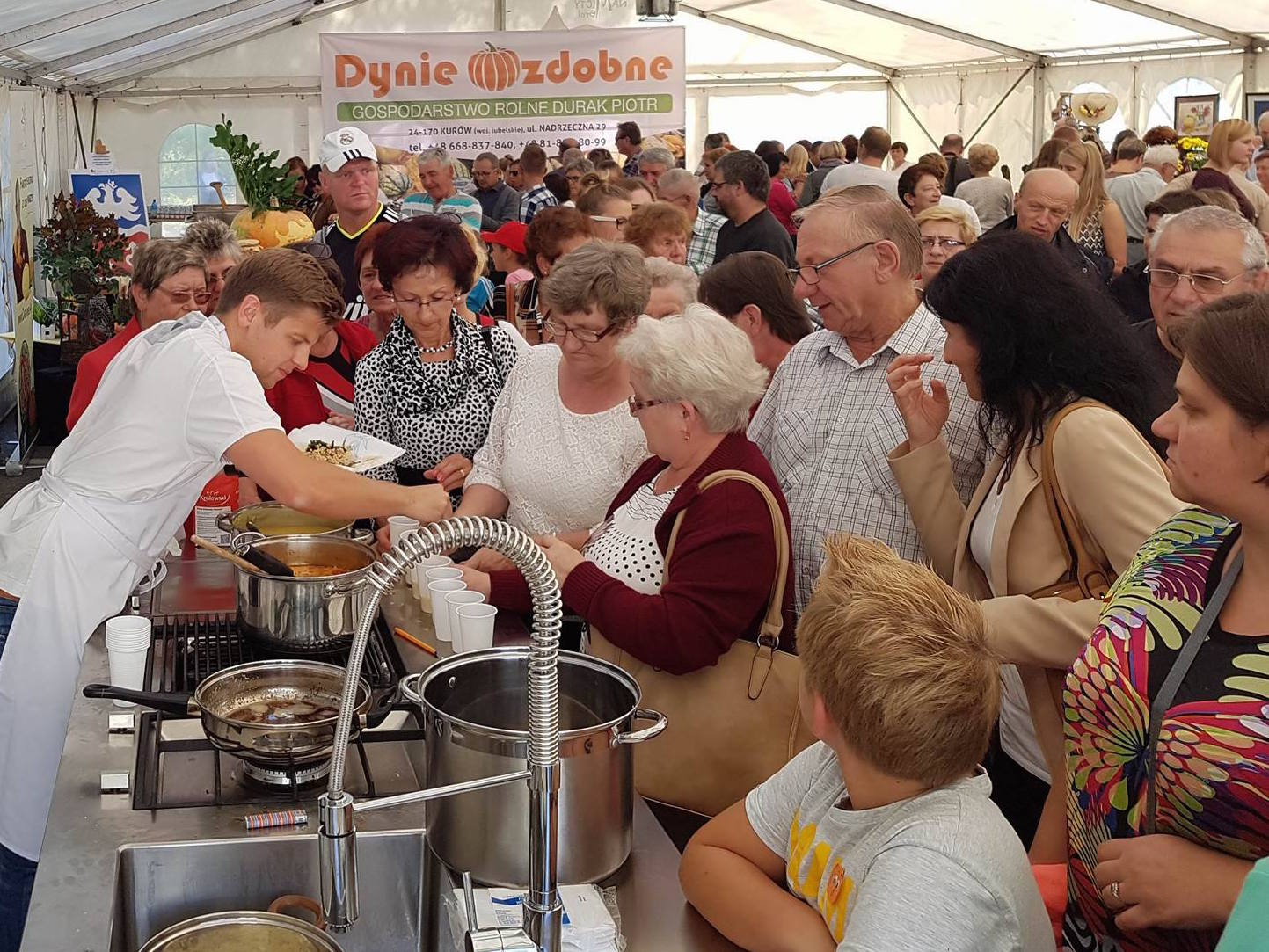 Podobnie było zresztą w przypadku przepisów, których podczas festiwalu była niezliczona ilość. Nawet Panie należące do Związku Śląskich Kobiet Wiejskich nie mogły wyjść z podziwu, co wymyśliły ich koleżanki z innych kół, a warto zaznaczyć, że w tym roku uczestniczki przybyły nie tylko z Opolszczyzny, ale też z województwa śląskiego i dolnośląskiego. - Dynia po okresie przestoju wraca do łask, a ten festiwal sprzyja jej jeszcze lepszemu wykorzystaniu - przyznawały zgodnie członkinie związku. Kubki smakowe i wszystkie inne zmysły mieszkańców na pokuszanie wodziły kremy z dyni, ciasta, galaretki, sałatki, konfitury i nalewki. Była to prawdziwa kulinarna uczta. Dla tych, którym smak dyni w wersji śląskich kobiet jest znany w gastronomiczna podróż zabrał półfinalista programu Master Chef Mateusz Nowak. Mieszkańcy mogli spróbować przygotowanego przez niego risotto, a także tajskiego curry. Oczywiście w obu daniach nie zabrakło dyni. Uczestnik telewizyjnego show zdradził też kilka tajemnych sztuczek, opowiedział o swojej przygodzie w programie i zapewnił, że przygodę w kuchni może rozpocząć każdy.