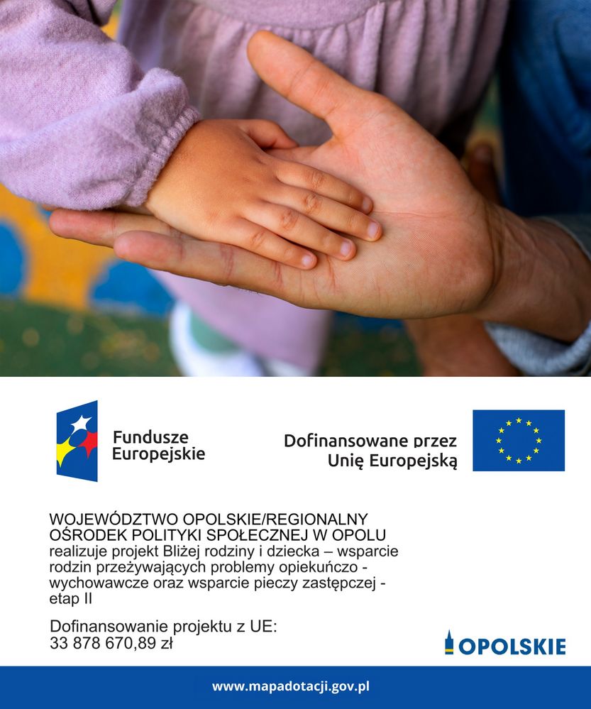 Projekt pn. „BLIŻEJ RODZINY I DZIECKA- WSPARCIE RODZIN PRZEŻYWAJĄCYCH PROBLEMY OPIEKUŃCZO-WYCHOWAWCZE ORAZ WSPARCIE PIECZY ZASTĘPCZEJ – ETAP II”