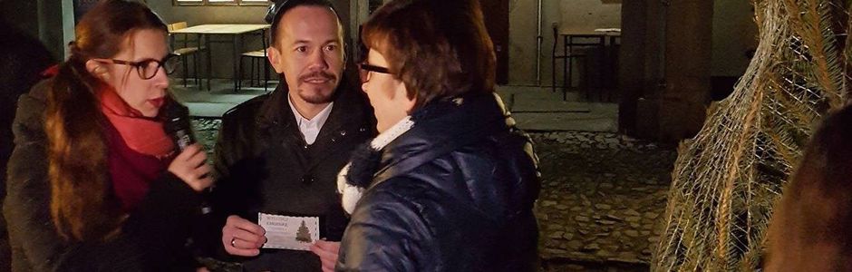 Piątkowy wieczór stał w powiecie krapkowickim pod znakiem choinkowych emocji i iście świątecznej atmosfery. Na dziedzińcu krapkowickiego zamku można było spróbować pysznego wigilijnego barszczu, posłuchać kolęd i zrobić ostatnie zakupy. Głównym punktem programu było losowanie choinek Tygodnika Krapkowickiego