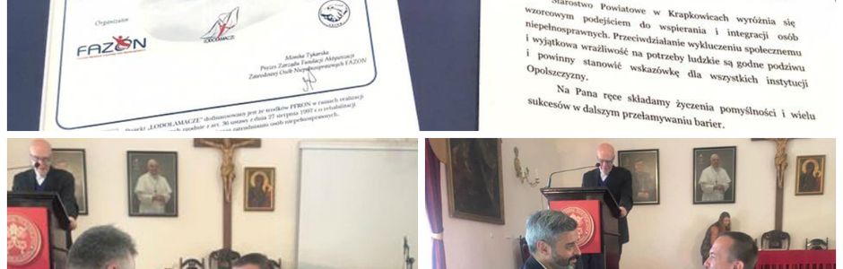 Wręczenie nagród odbyło się na początku ubiegłego tygodnia auli Papieskiego Wydziału Teologicznego we Wrocławiu. Zdaniem Kapituły działalność Starostwa Powiatowego w Krapkowicach na polu rehabilitacji zawodowej i społecznej osób niepełnosprawnych stanowi wzór godny do naśladowania. Nagroda została przyznana za szczególną wrażliwość społeczną i promowanie aktywności osób niepełnosprawnych.