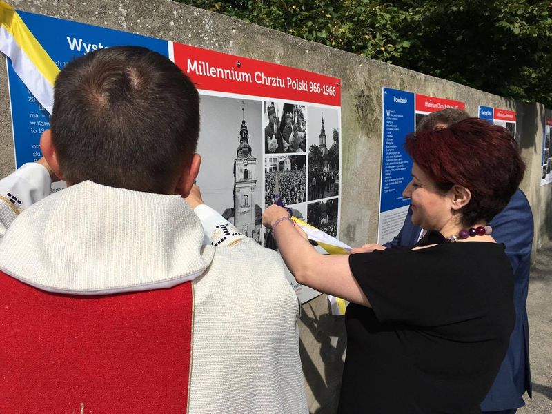 Mszy przed półwiekiem, która zgromadziła przeszło 20 tysięcy mieszkańców całego regionu przewodniczył ówczesny Metropolita Krakowski Karol Wojtyła, kazanie wygłosił natomiast Prymas Polski Stefan Wyszyński. Tamte pamiętne sceny i słowa można zobaczyć na współfinansowanych przez powiat krapkowicki tablicach. Pomysłodawcą wystawy jest Stowarzyszenie Przyjaciół Kamienia Śląskiego. Uroczystego otwarcia w ubiegłą niedzielę dokonała wicestarosta Sabina Gorzkulla, która przy okazji podziękowała osobom zaangażowanym w realizację przedsięwzięcia. Jak podkreśliła, to wydarzenie było ważne nie tylko dla osób wierzących, ale dla wszystkich Polaków. Pomimo różnych zabiegów ze strony „władzy ludowej” w słowo głoszone przez Prymasa Tysiąclecia i późniejszego święto Jana Pawła II wsłuchało się tysiące wiernych.