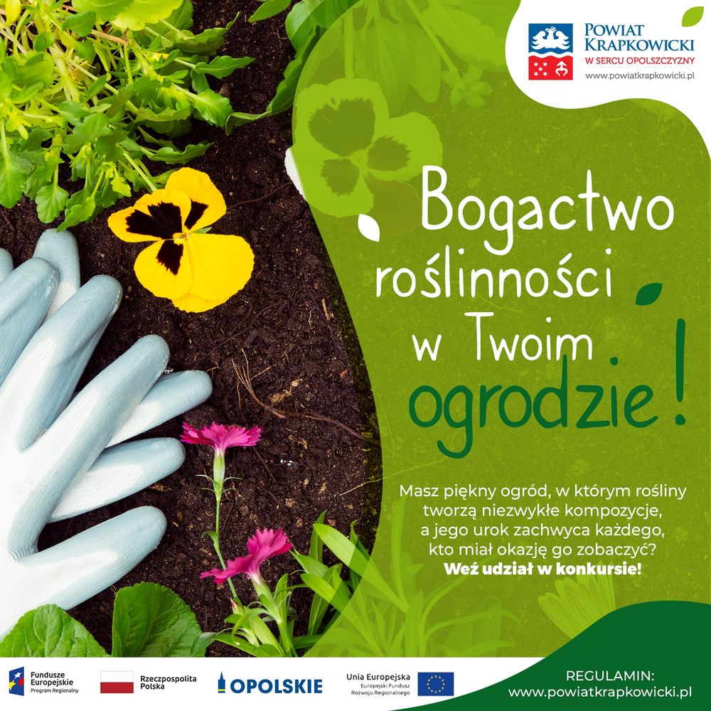 Ogród naturalny, a może zaprojektowany w każdym calu? W naszym konkursie nie ma to znaczenia, najważniejsze, aby całość tworzyła piekną i wyjątkową przestrzeń. Mieszkańców powiatu krapkowickiego, którzy z dużą pieczałowitością dbają o swój ogród, przez co jego urok zachwyca innych, zachęcamy do zrobienie zdjęcia, wypełnienia formularza i nadesłania lub osobistego dostarczenia ich do Starostwa Powiatowego w Krapkowicach. Laureci (10 uczestników) otrzymają nagrody pieniężne! Szczegóły w...