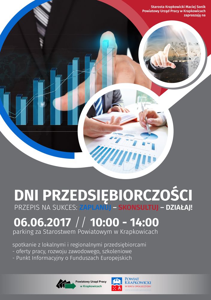 6 czerwca na parkingu za krapkowickim starostwem odbędą się Dni Przedsiębiorczości. Swoją obecność zapowiedziało ponad 30 firm zarówno lokalnych, jak i regionalnych. Na stoiskach znaleźć będzie można oferty pracy, rozwoju zawodowego, a także propozycje szkoleniowe.